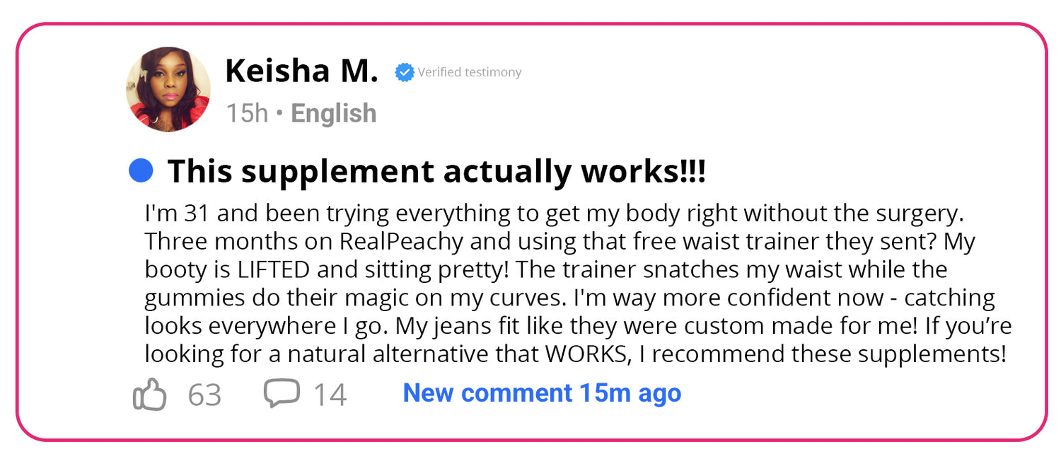RealPeachy uses a proprietary blend of botanical ingredients like Maca Root, Tribulus, and Fenugreek to naturally balance your hormones and promote strategic fat distribution to feminine areas.